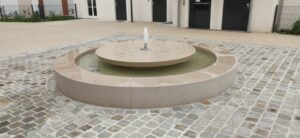 Mais aussi, la construction d’une magnifique fontaine circulaire en pierre calcaire de comblanchien avec assises, elle est installée au centre de la place piétonne, située au cœur des bâtiments collectifs.